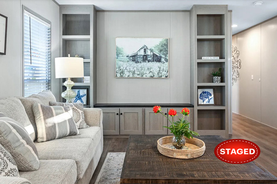 Stylish 1,140 sq. ft. home with 3 bedrooms and 2 bathrooms, designed for modern convenience. It features an open floor plan, multifunctional kitchen island, and split bedrooms for added privacy. It offers everything you need and more including stainless steel appliances, a farmhouse sink, walk-in pantry, utility room, a deluxe master bath (complete with separate recliner tub/shower and double sinks), built-in entertainment center, and EVEN MORE! Great choice for those looking for both comfort and style.